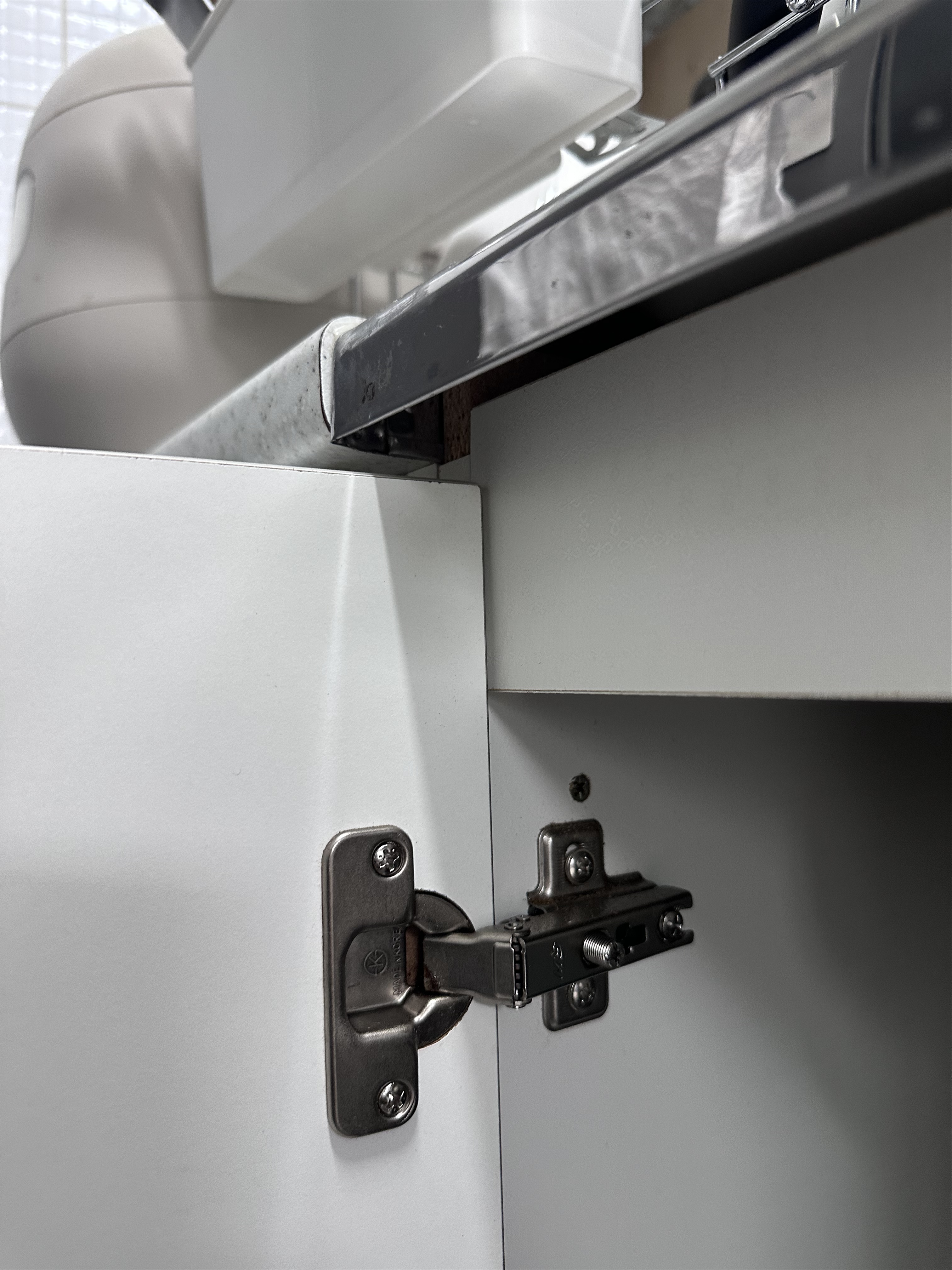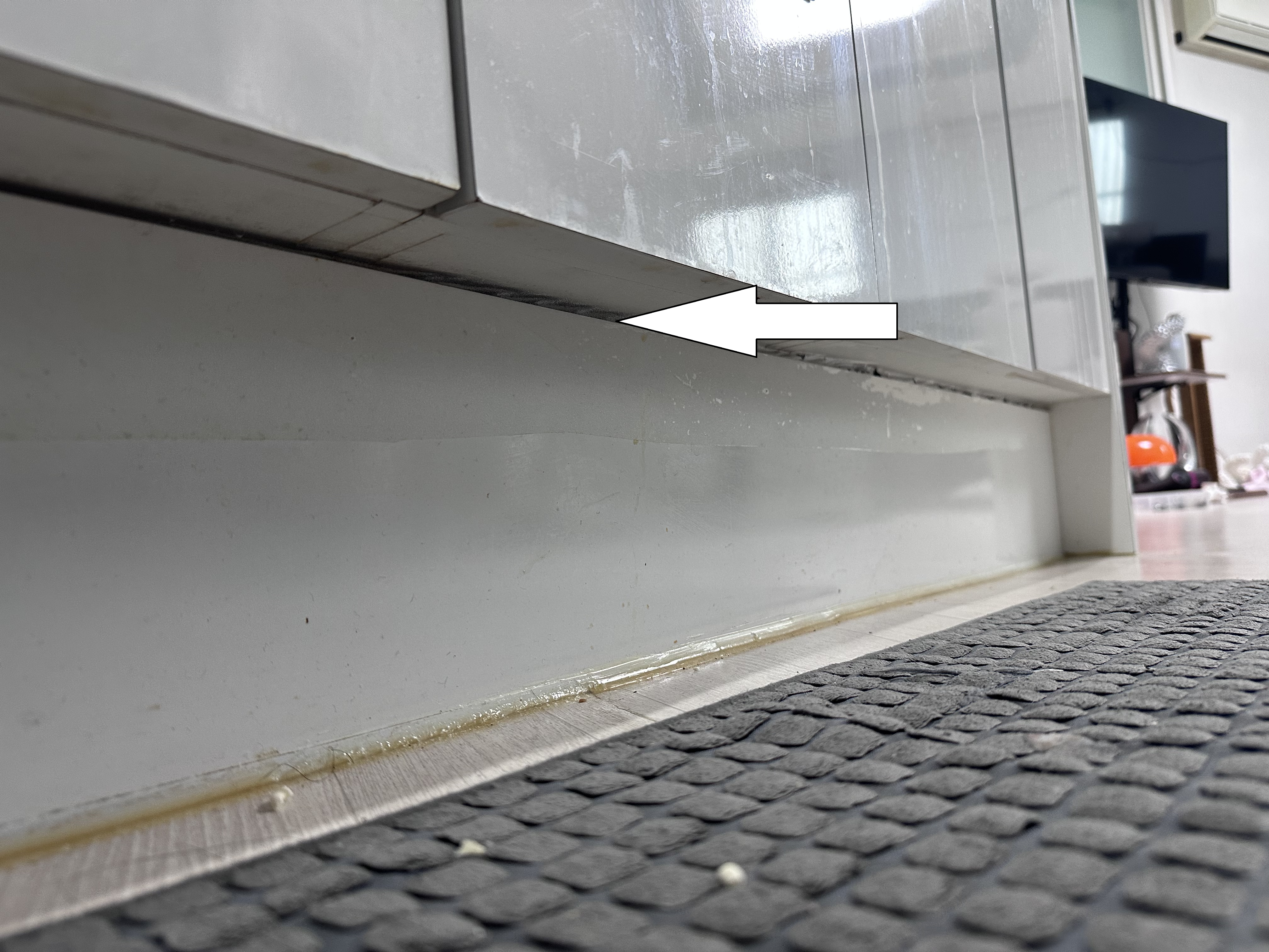 상부장의 경첩 독먹이 작업 동일하게 해주시면 되고 위 사진과 같은 틈이 있다면 바선생들의 은신처를 제공하는 셈이니 막아주시는걸 추천드립니다.