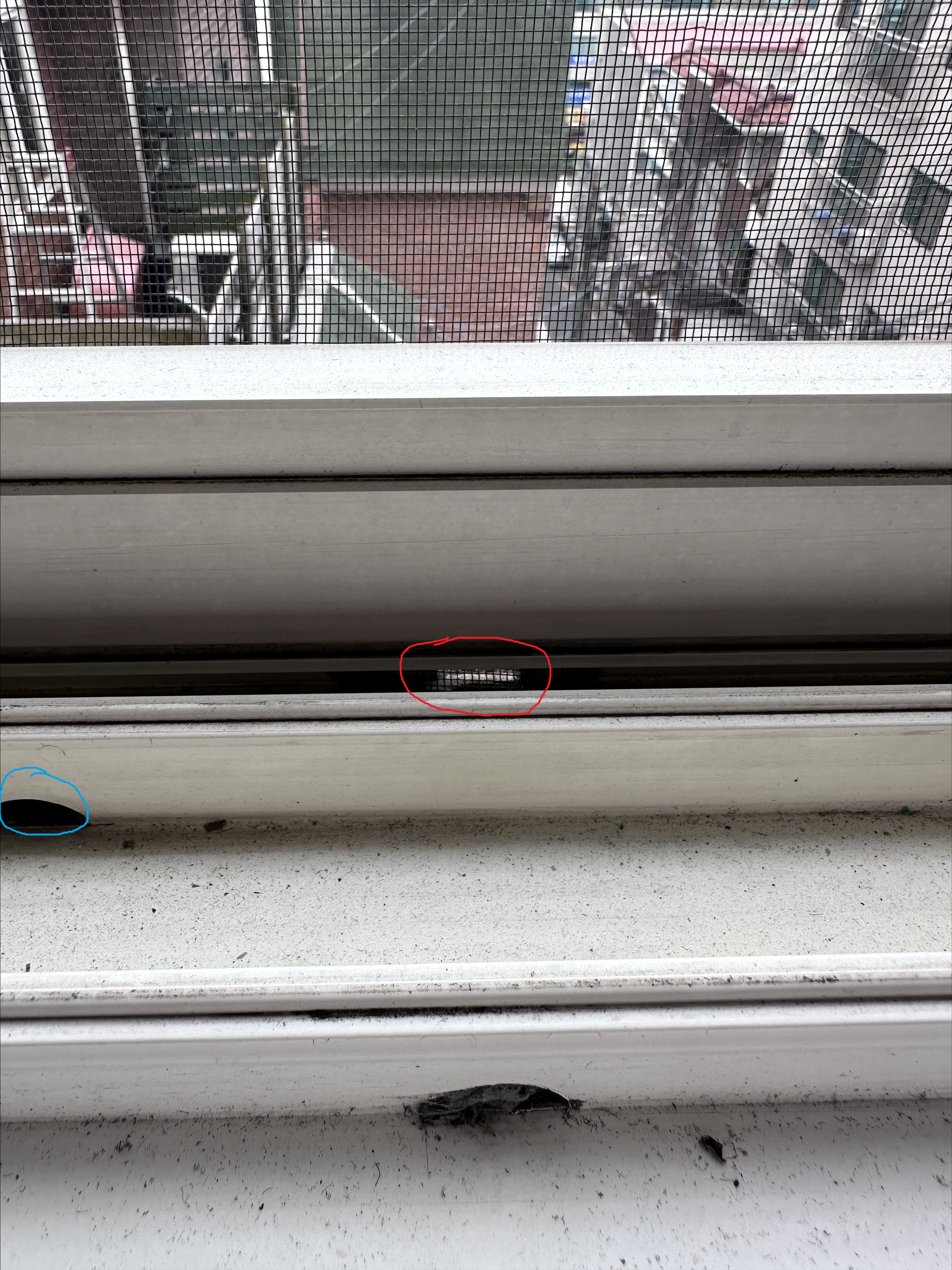 창틀 하단을 보시면 물 빠짐 구멍이 있습니다.