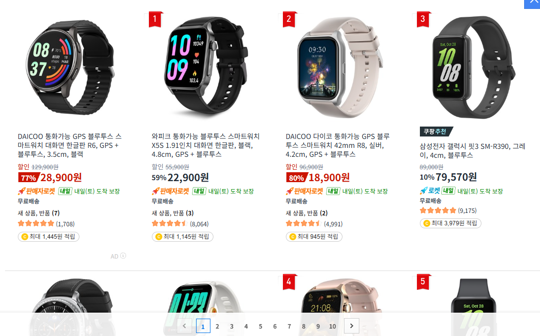 근데 욕심이 그리 크진 않다보니 애플, 삼성 그런 브랜드 가격대의 워치는 부담스럽고 해서 기술이 많이 풀렸을테니 쿠팡에도 있겠지? 하고 찾아봤습니다.