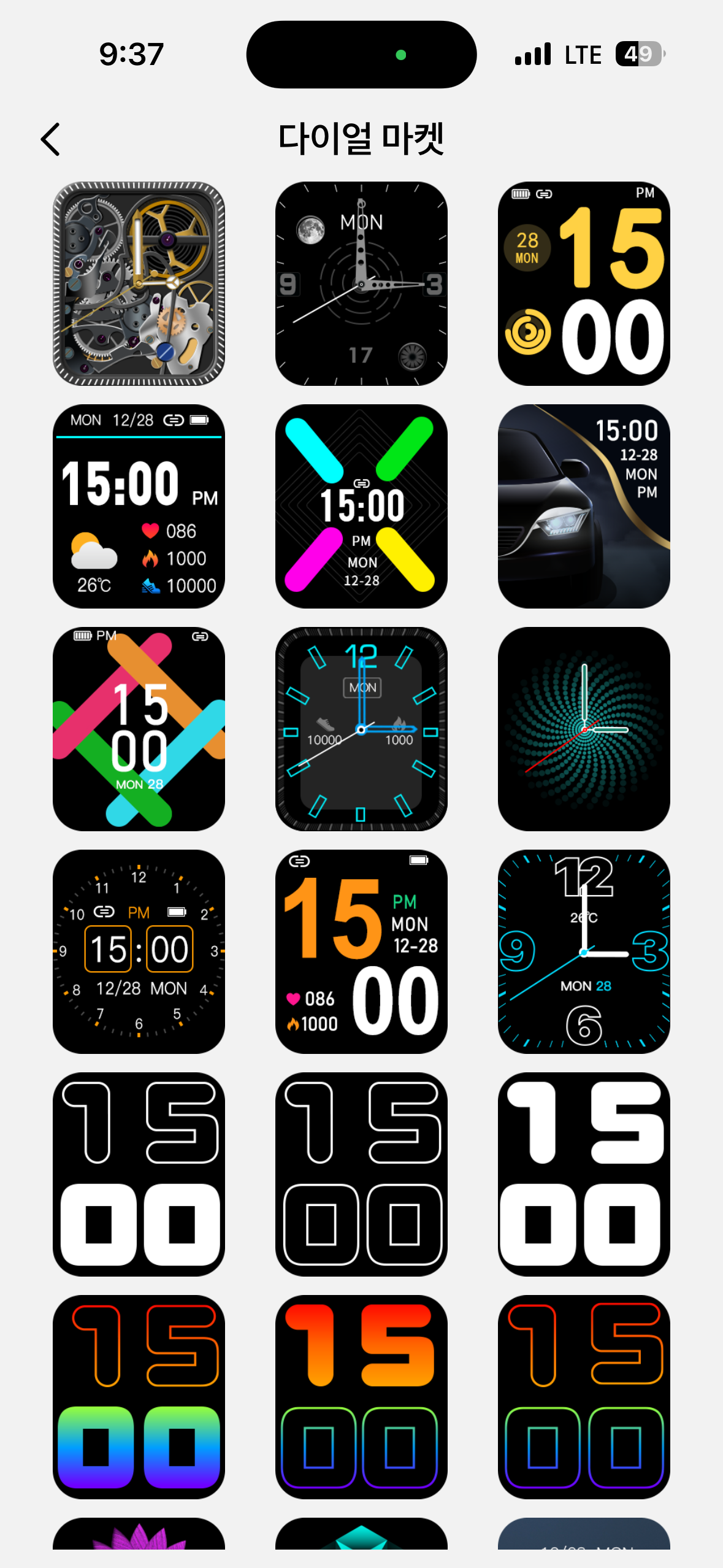 앱들은 이정도로 있고 전체적인 느낌은 확실히 저가중에 저가 제품의 가성비 스마트워치이다보니 화면 넘길때 깔끔치 못한 점.