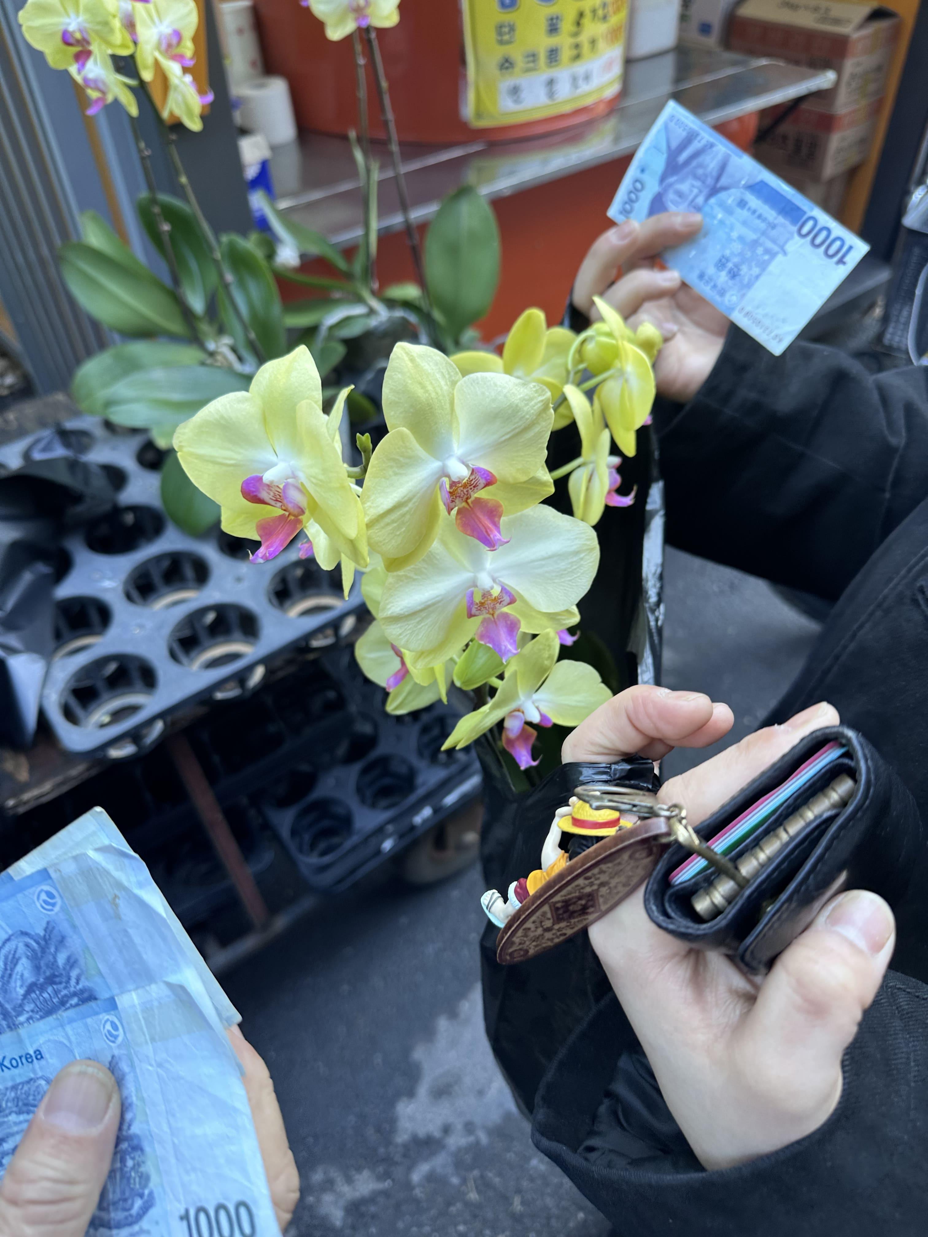 그리고 여자친구가 식물을 되게 좋아하는데 저 꽃 두개(?)에 6천원에 판매하고 계시는 상인분이 계셔서 홀린듯이 지갑을 열더라구요.